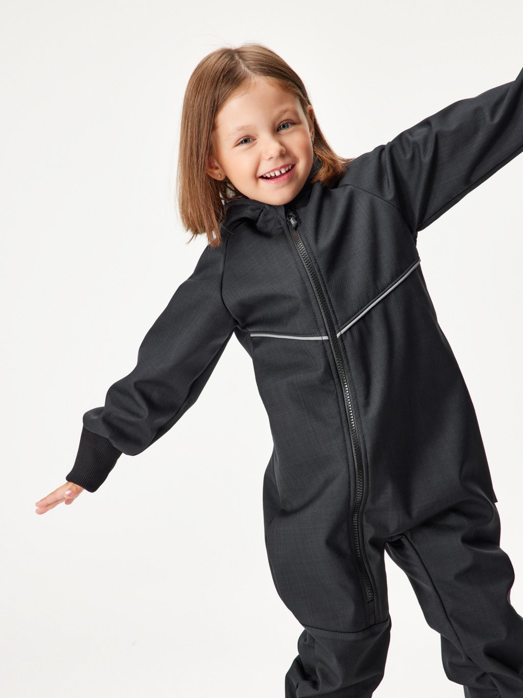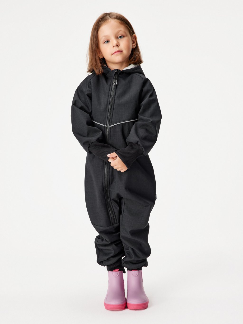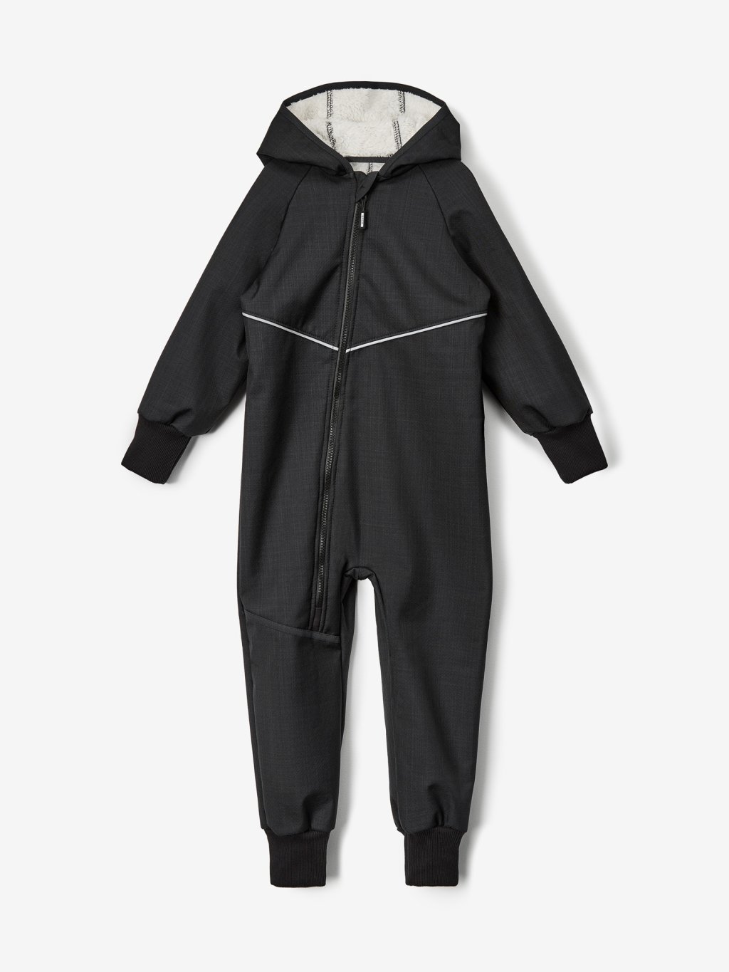 Batolecí softshellová kombinéza s beránkem Mini, Černá Žíhaná