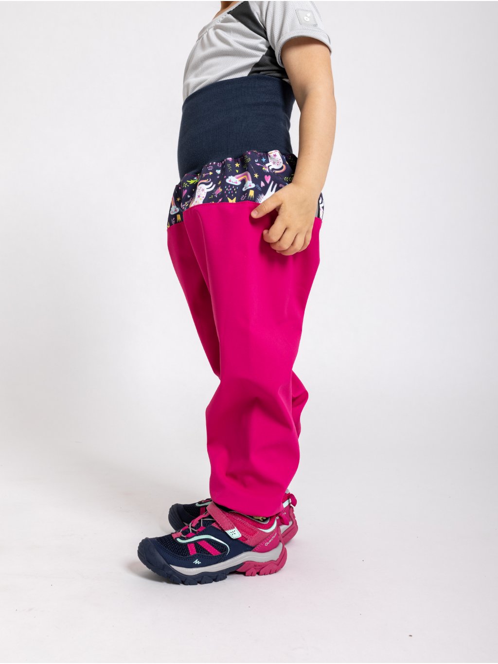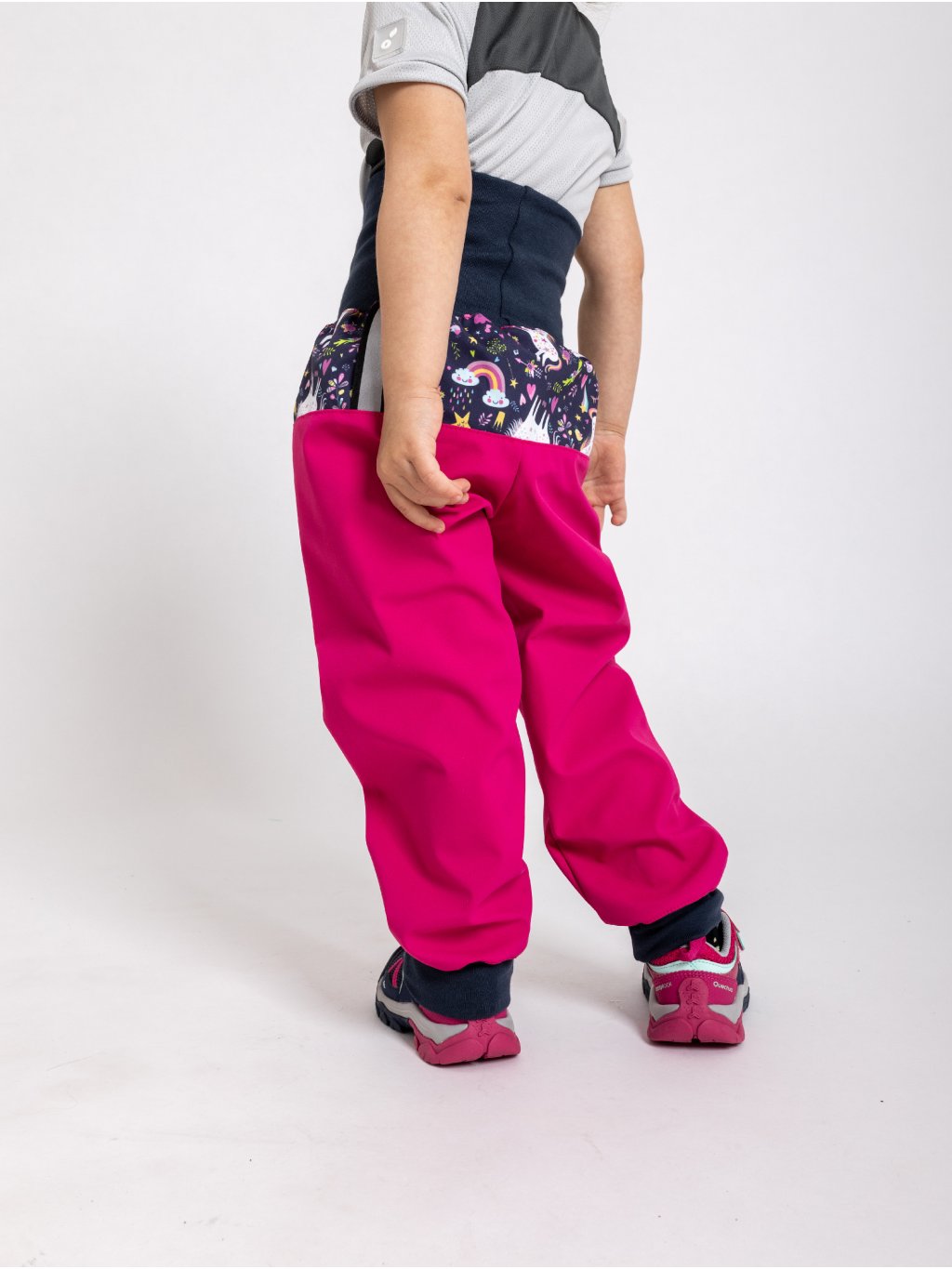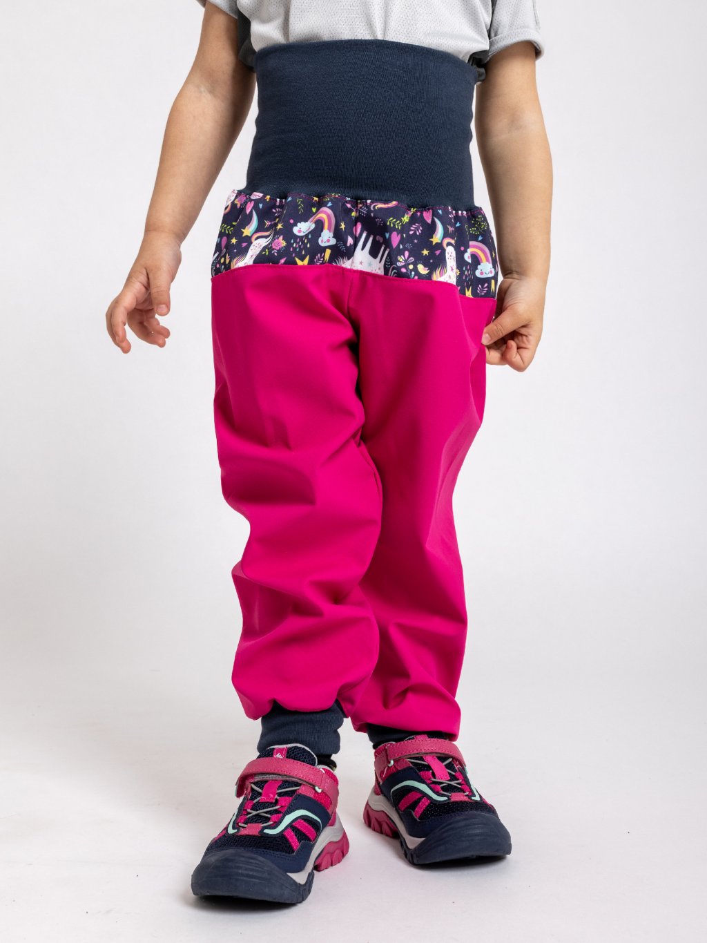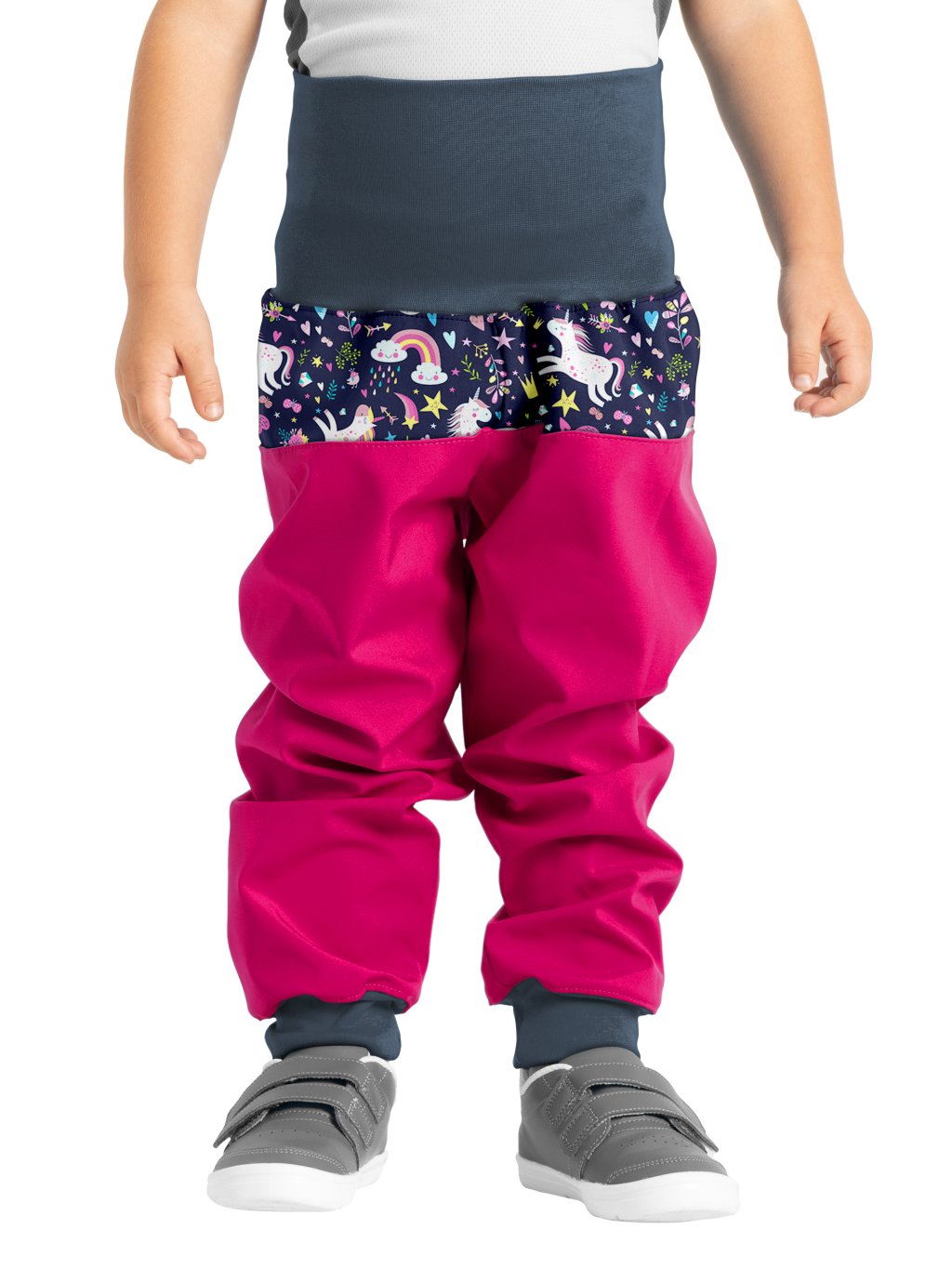 Batolecí softshellové kalhoty bez zateplení Basic, Fuchsiová, Jednorožci