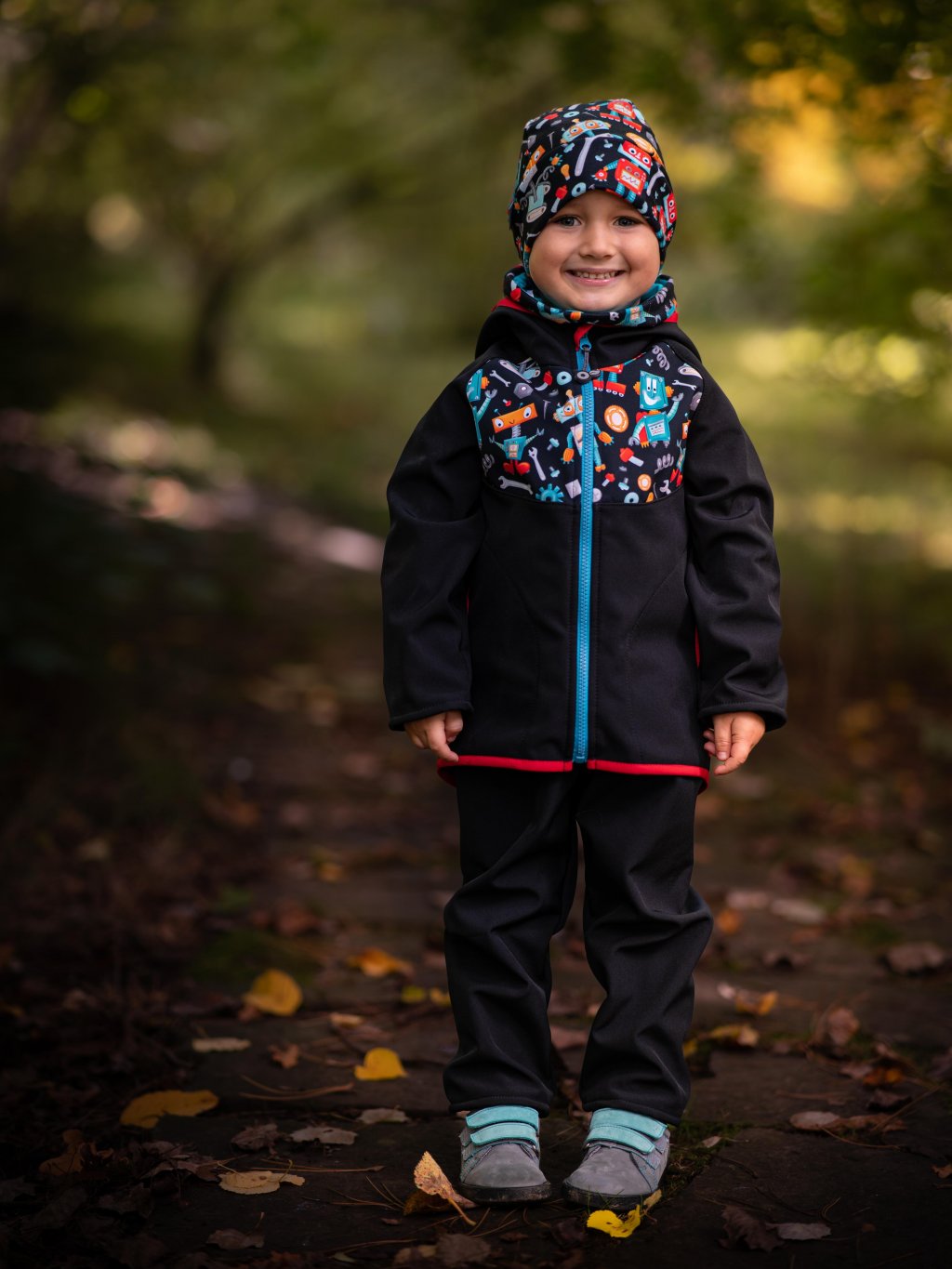 - hlavní materiál (softshell): rub, líc: 100% polyester, membrána: 100% polyuretan