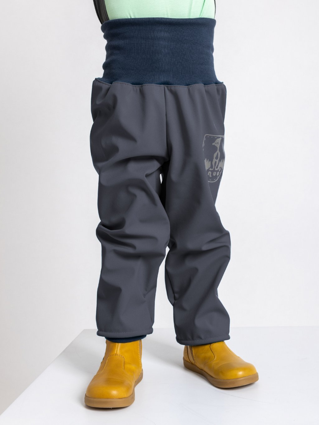 Máme velikost 74/80 na 8,5měs. a sedí dobře i přes látkovou plenku. Zvýšený pas je super, je vysoký, ale elastický takže hrudníček nestahuje. Náplety nohavic jdou dobře přetáhnout přes boty (capáčky), takže nikde nic neprofoukne.