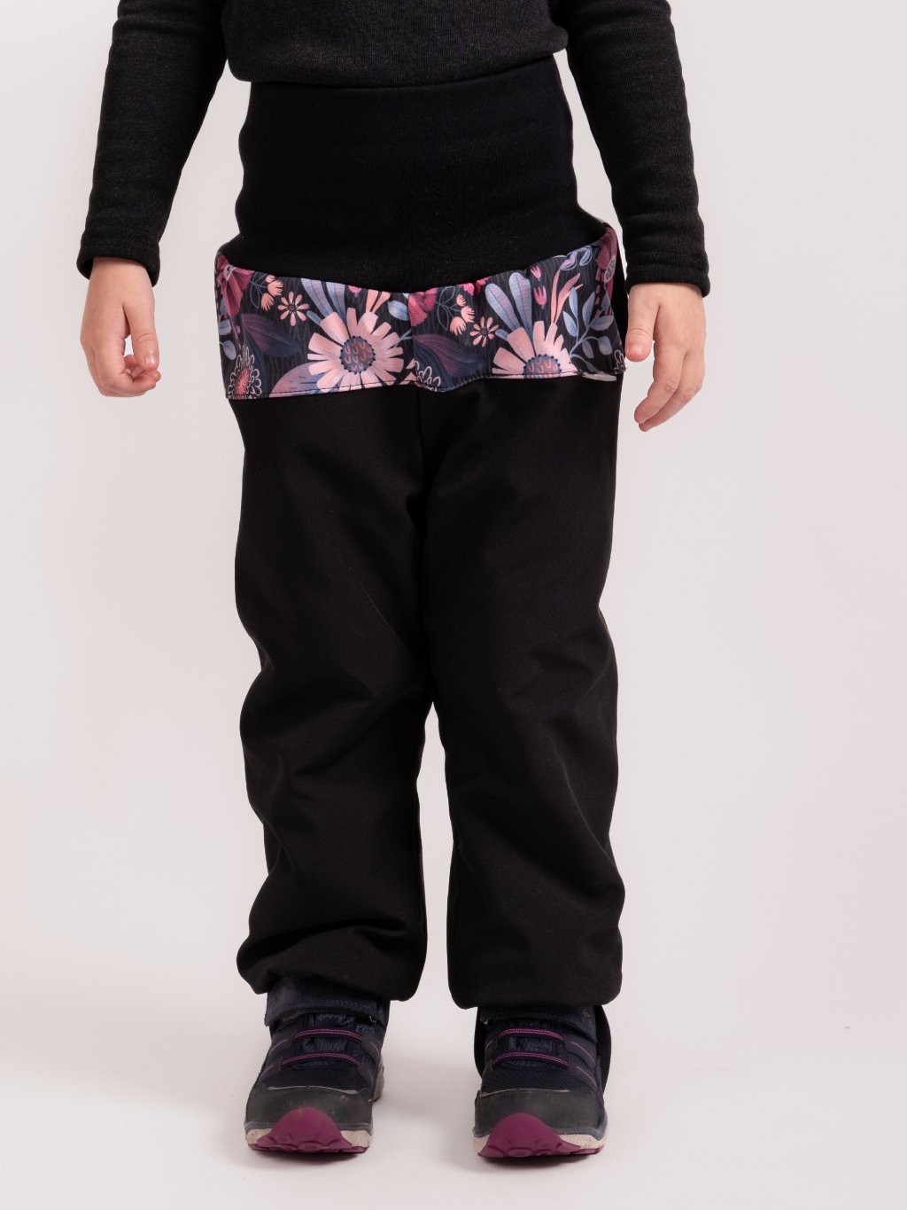 Batolecí softshellové oteplovačky s beránkem Plus, Černá, Kouzelné květiny