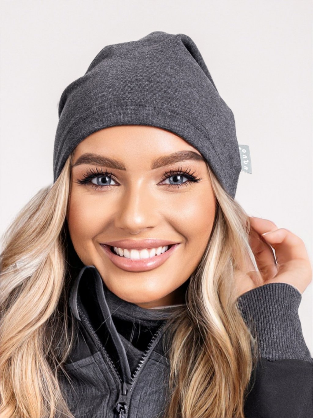 Dámská čepice z teplákoviny Basic, Grafitová Šedá