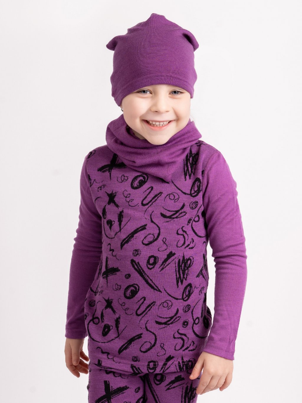 Dětská merino čepice Basic, Ostružinová