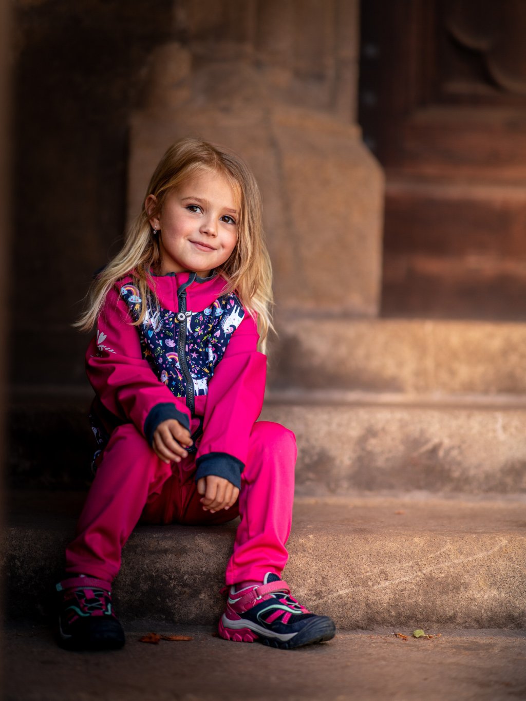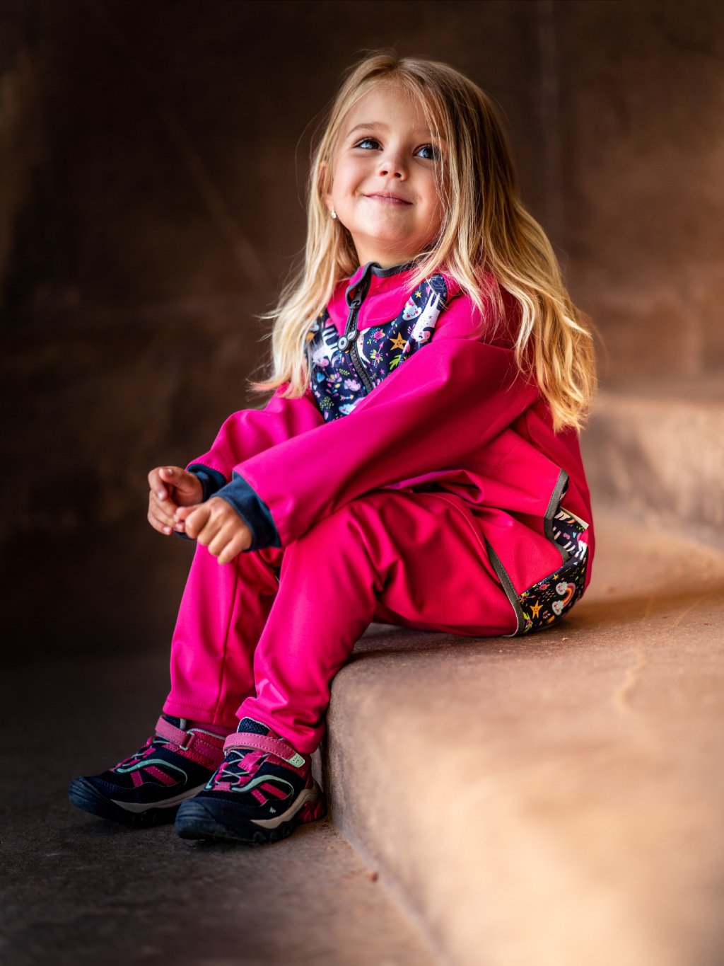 Sice poněkud širší střih, ale design, poutko na kapuci a snadné zapínání zipu super. Jen učitelky ve školce si pořád myslí, že se dítě v softshellu paří...