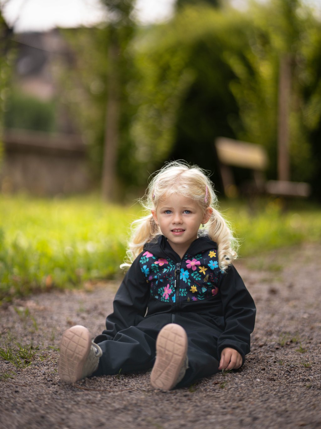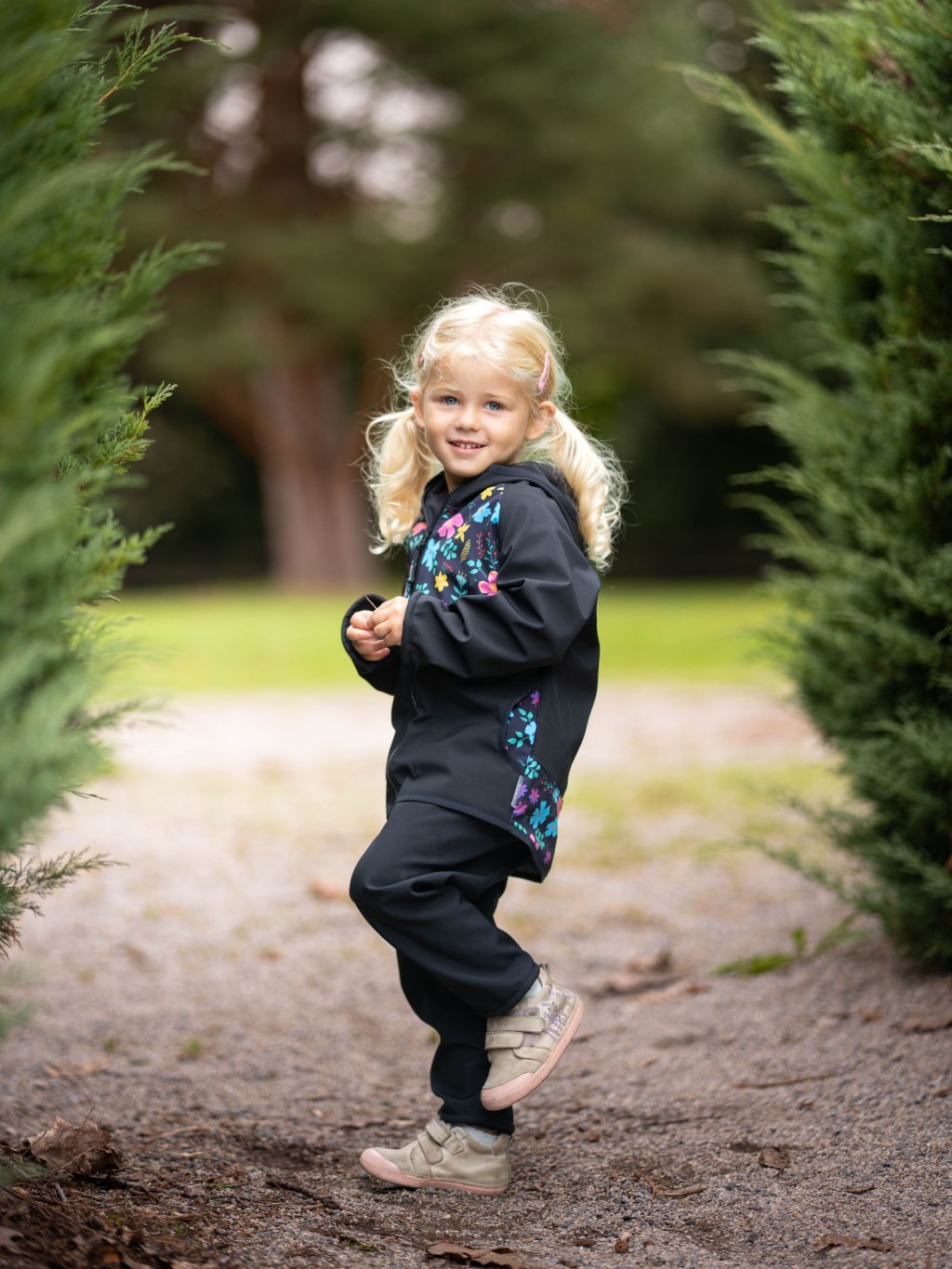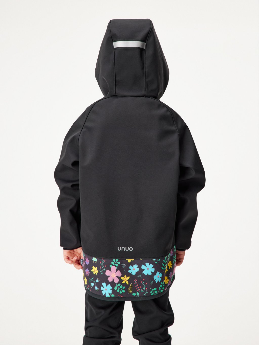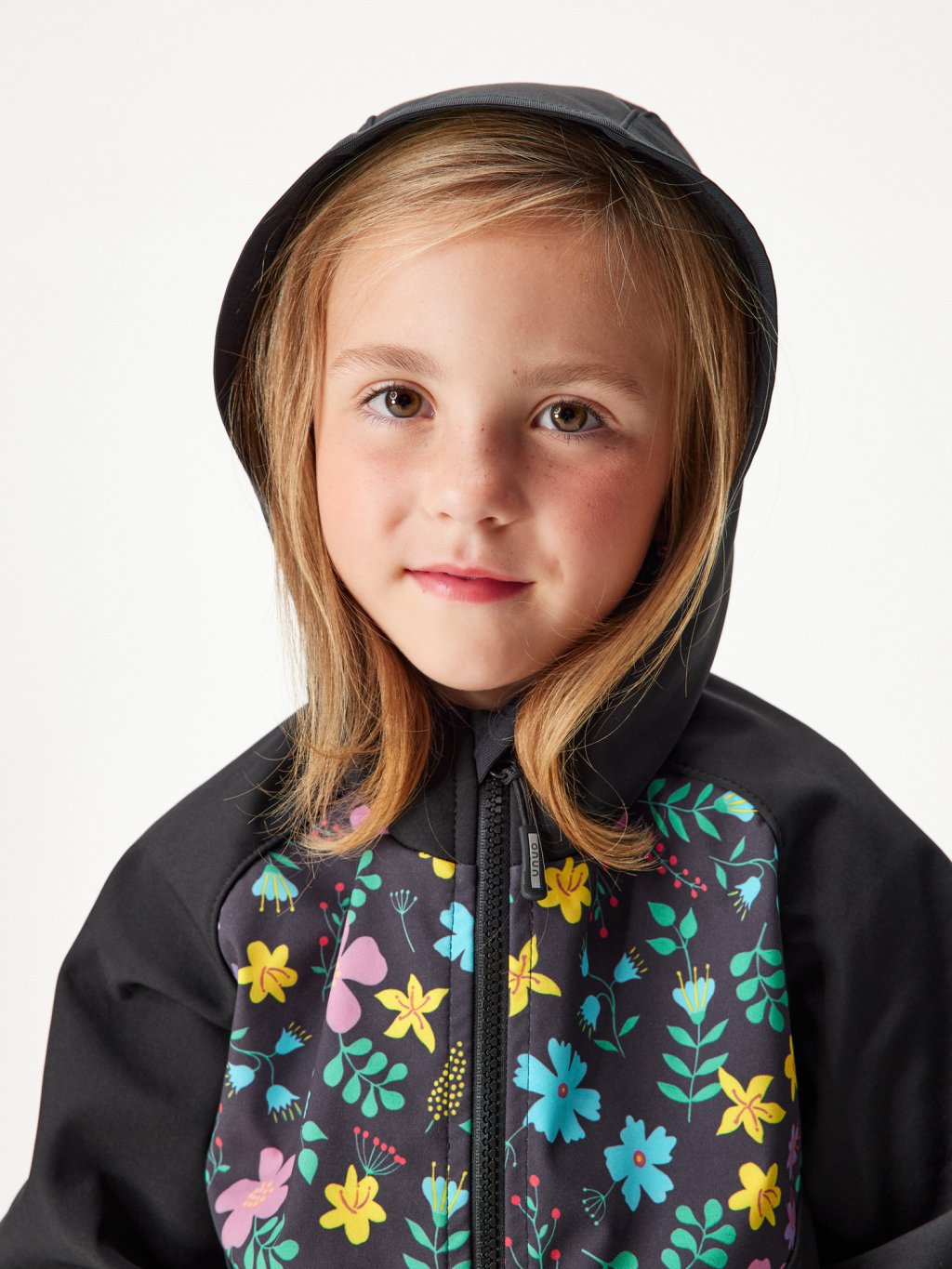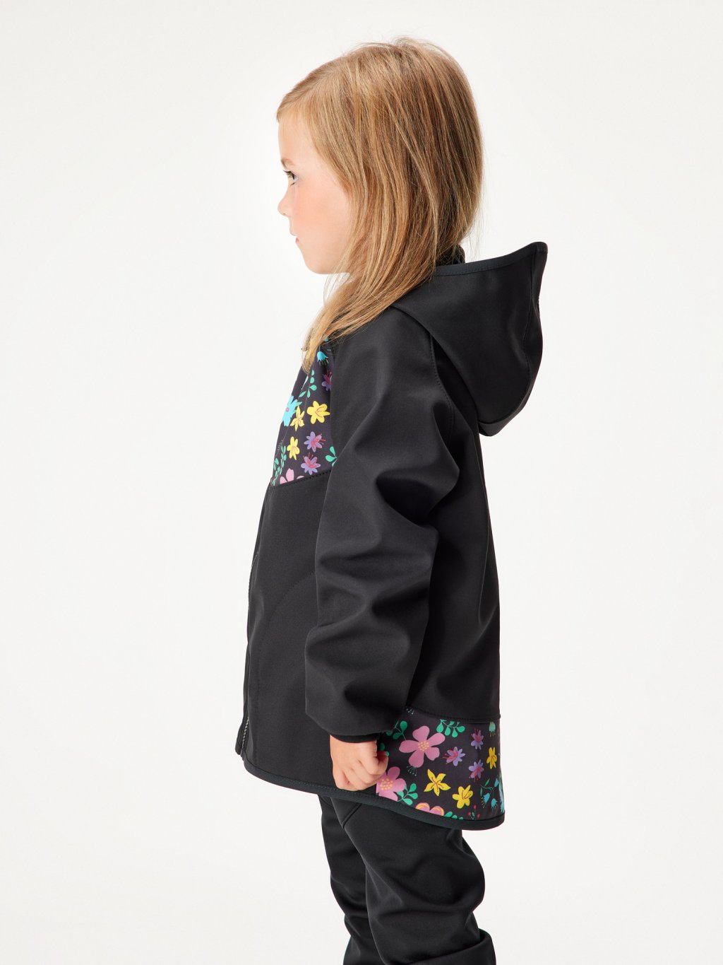 Dětská softshellová bunda s fleecem Basic, Černá, Kytičky