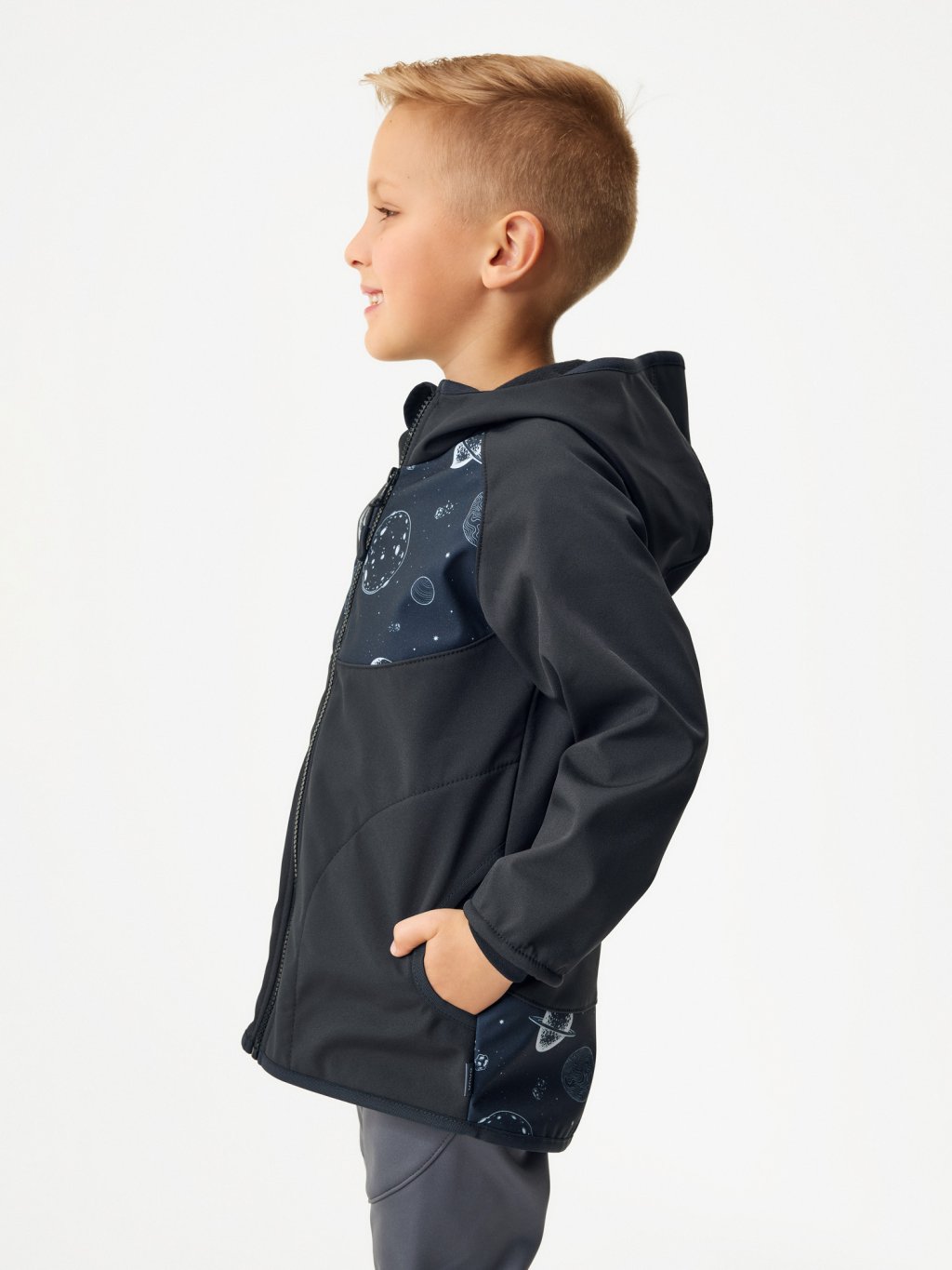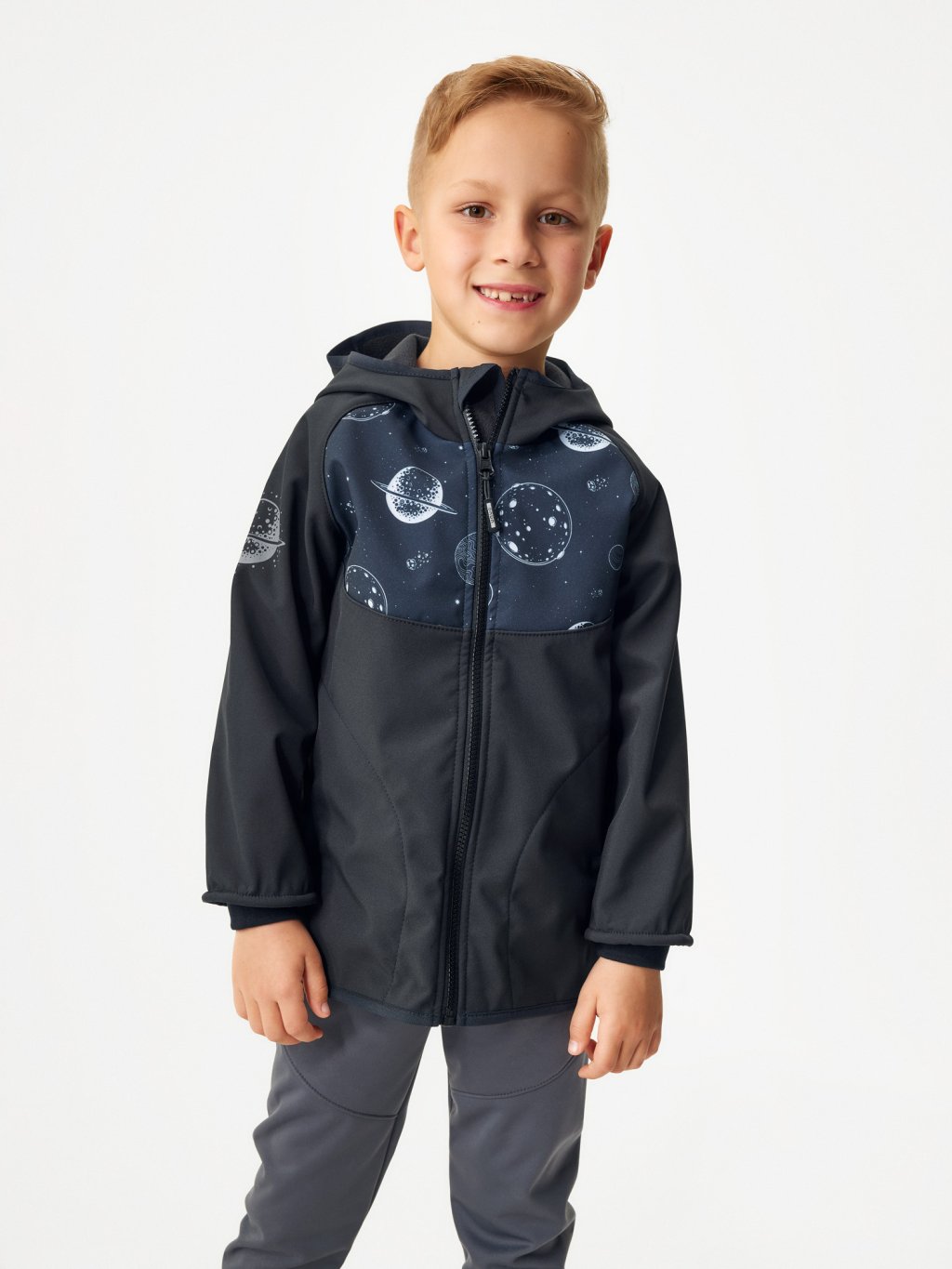 Dětská softshellová bunda s fleecem Basic, Černá, Planety