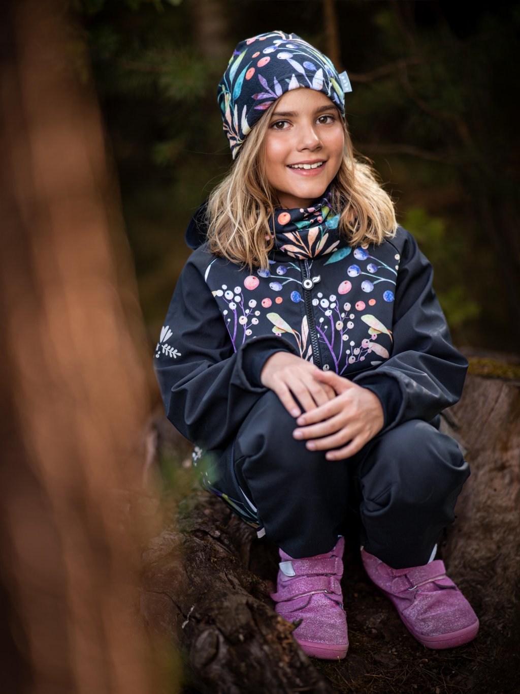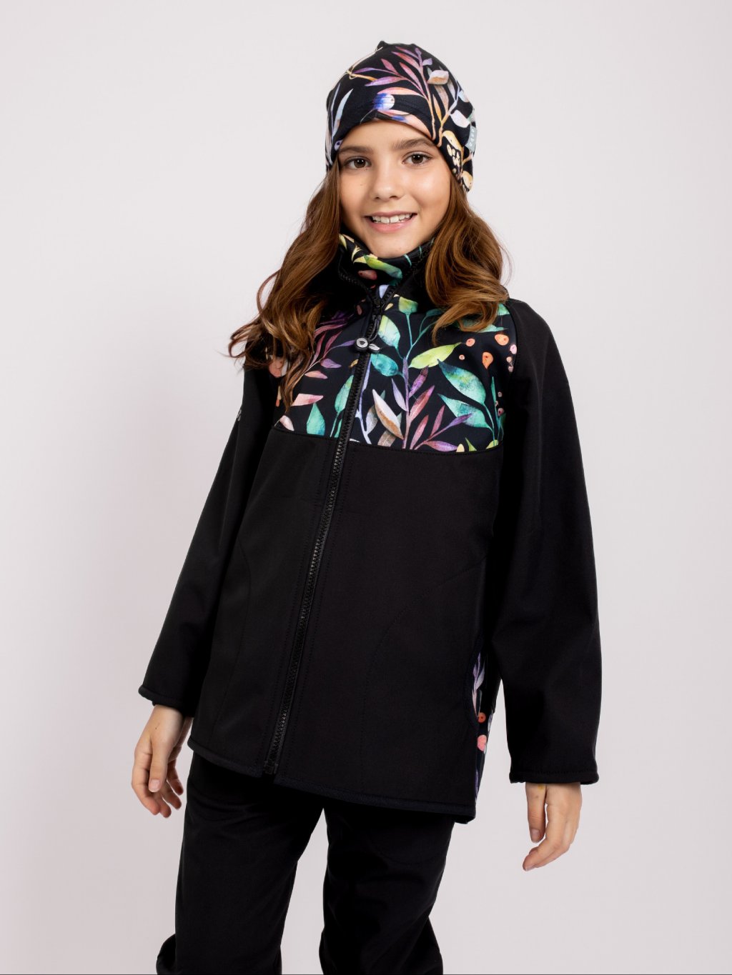 Dětská softshellová bunda s fleecem Basic, Černá, Podzimní bobule