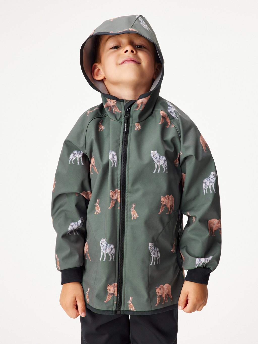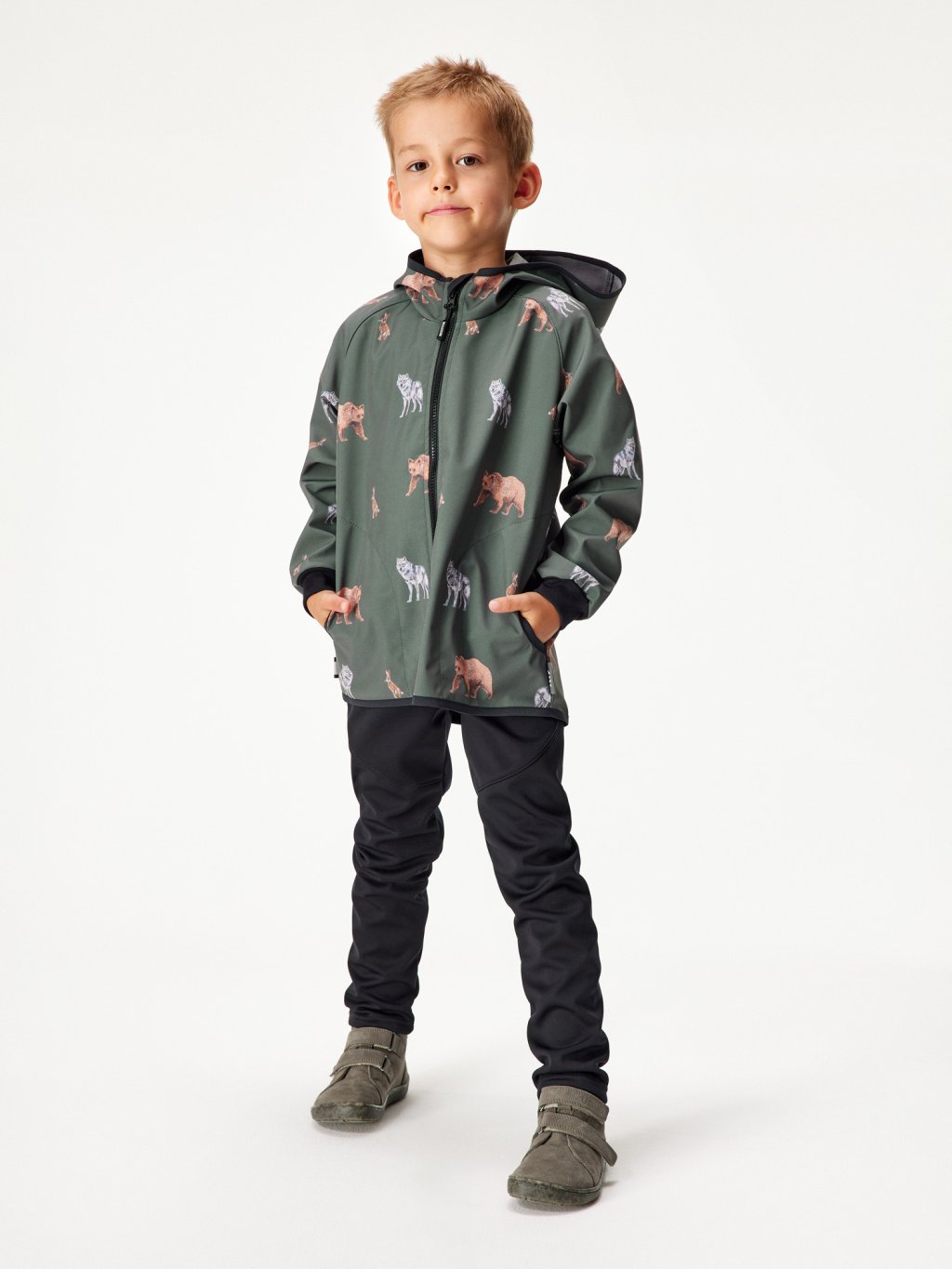 Dětská softshellová bunda s fleecem Basic, Khaki, Lesní zvířata