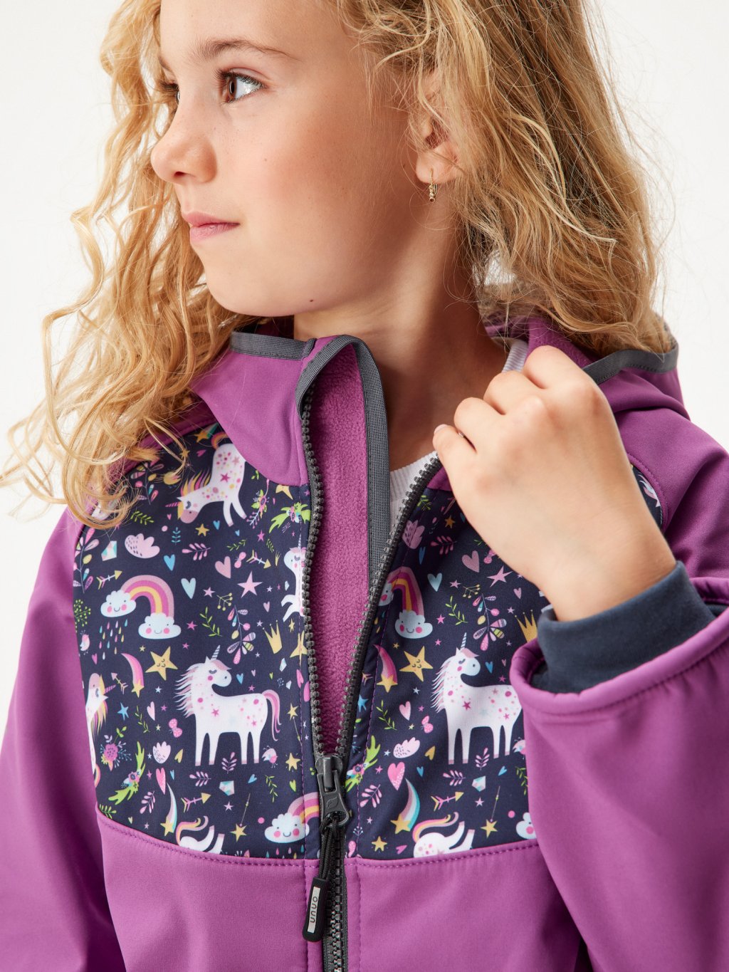 Dětská softshellová bunda s fleecem Basic, Ostružinová, Jednorožci