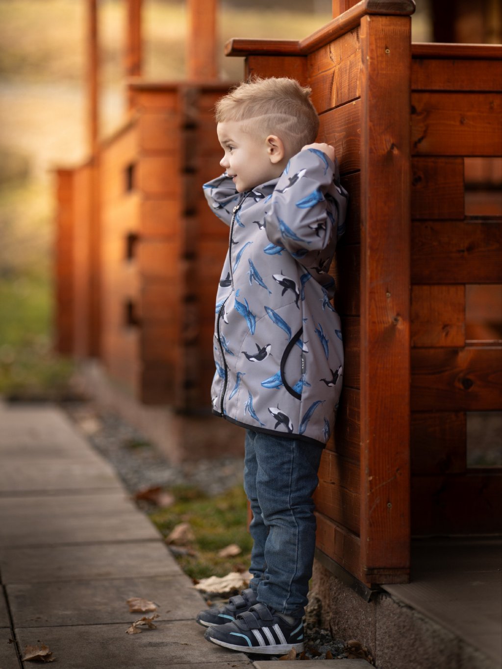Dětská softshellová bunda s fleecem Basic, Šedá, Velryby