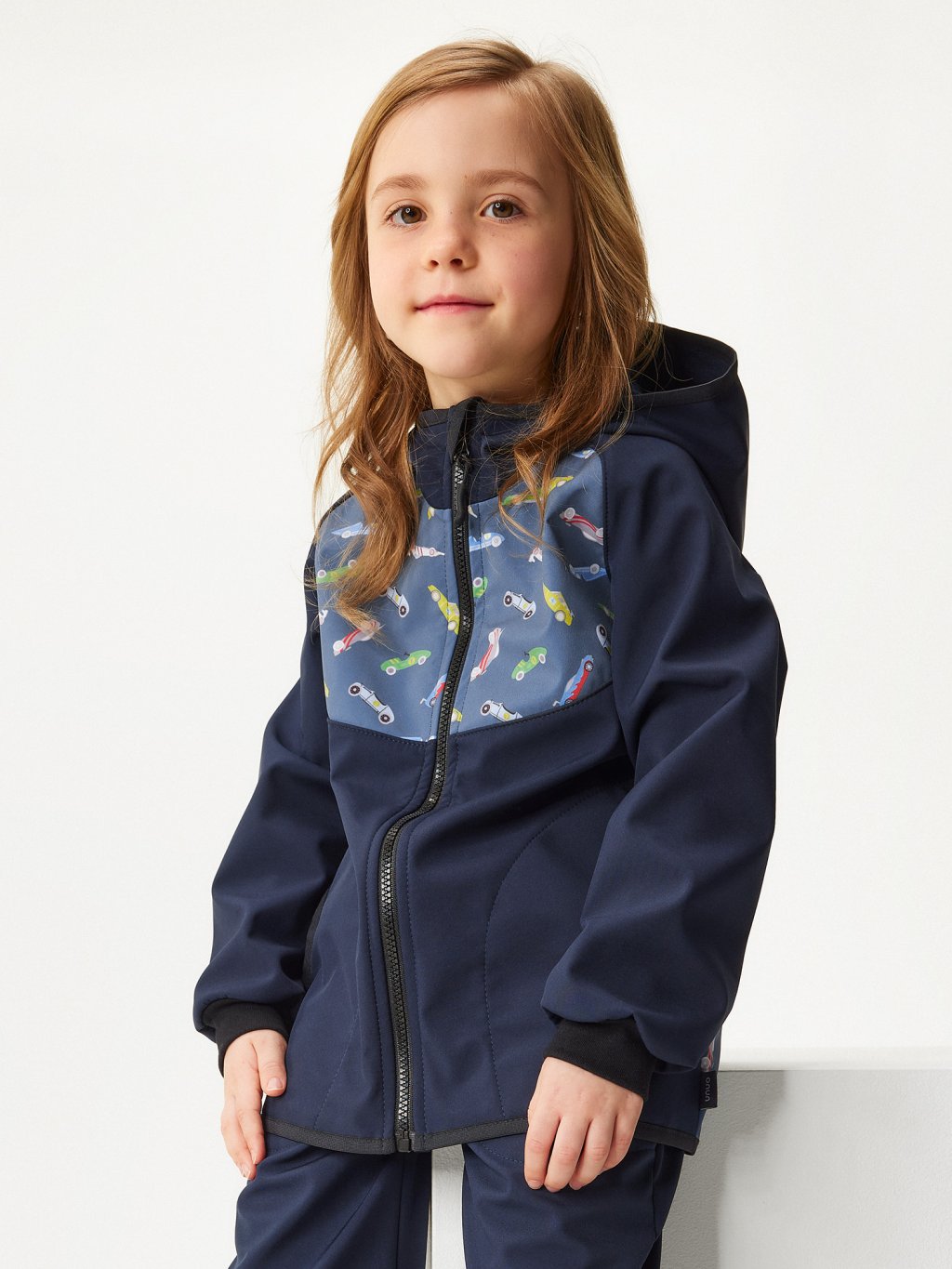 Dětská softshellová bunda s fleecem Basic, Tm. Modročerná, Auta