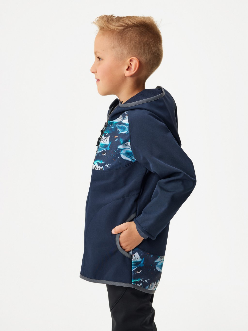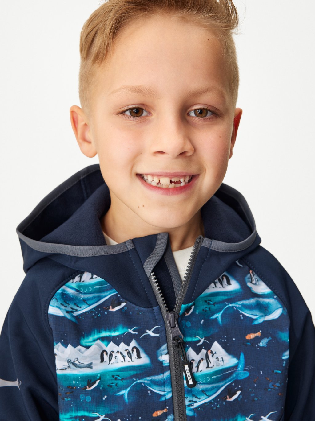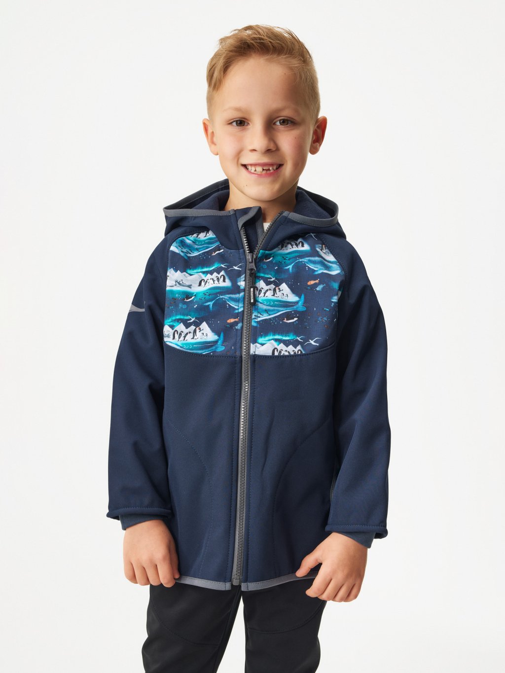 Dětská softshellová bunda s fleecem Basic, Tm. Modročerná, Tučňáci