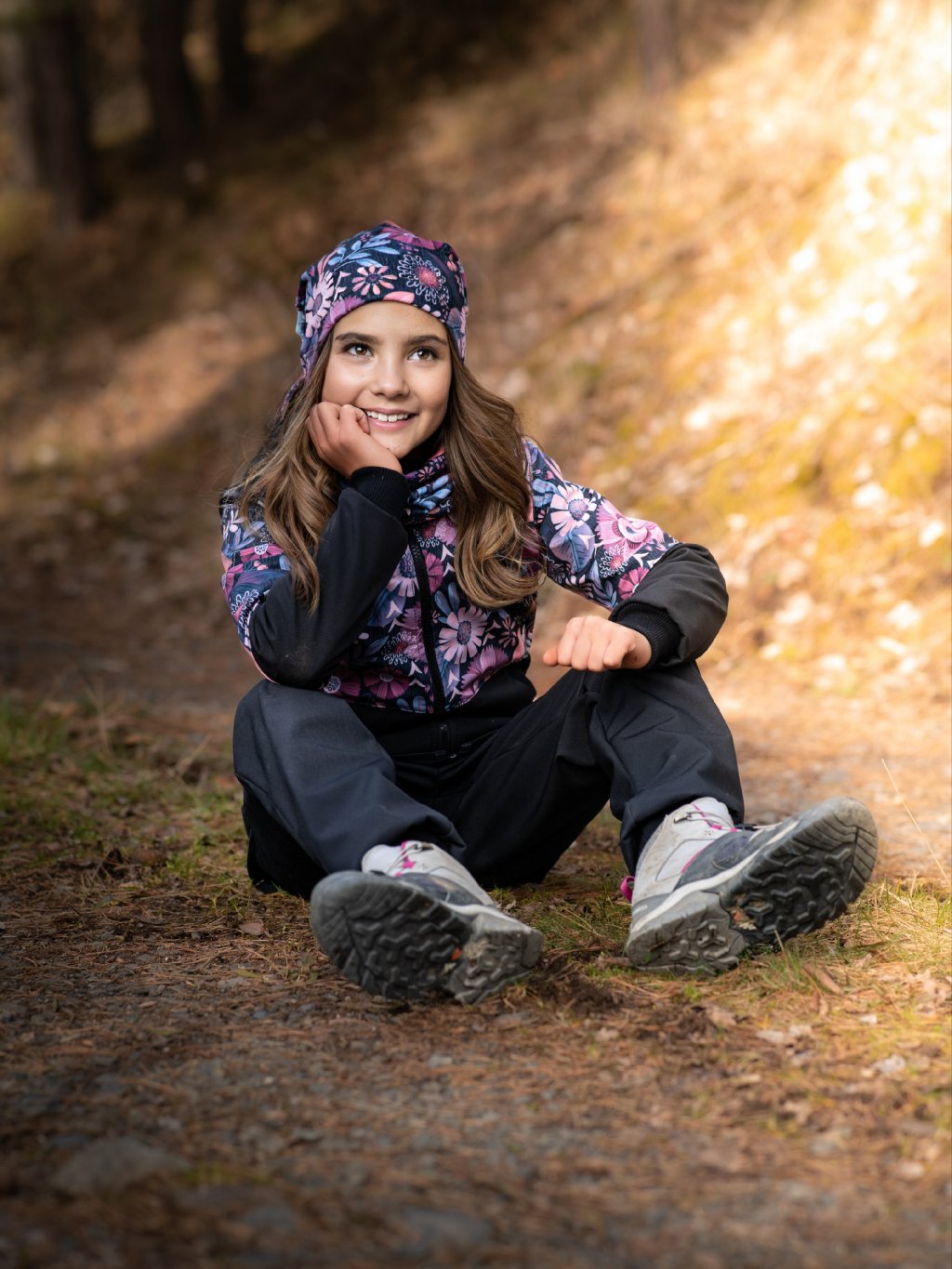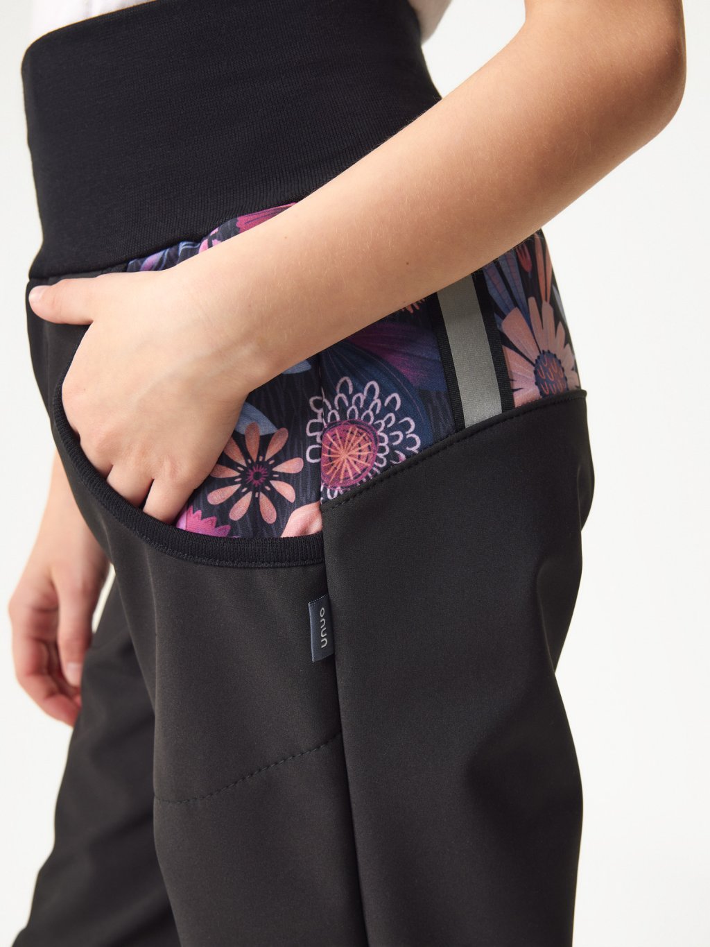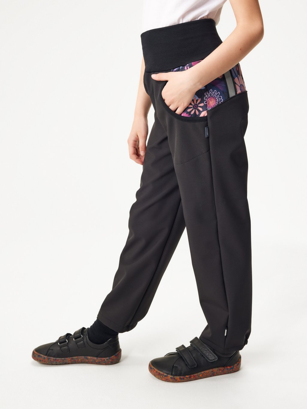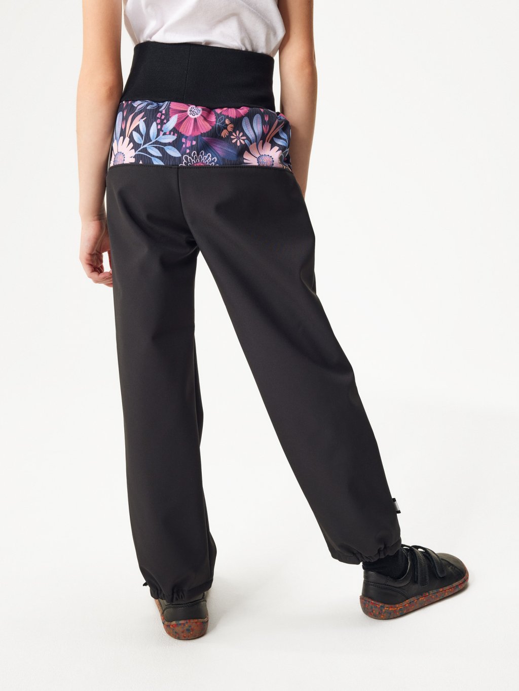 Dětské softshellové kalhoty s fleecem Basic, Černá, Kouzelné květiny