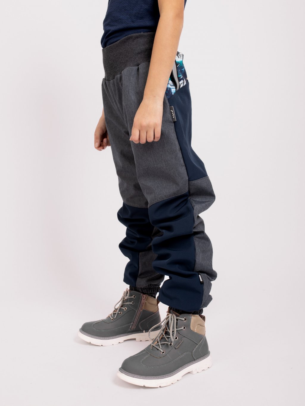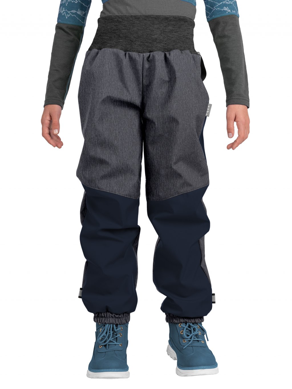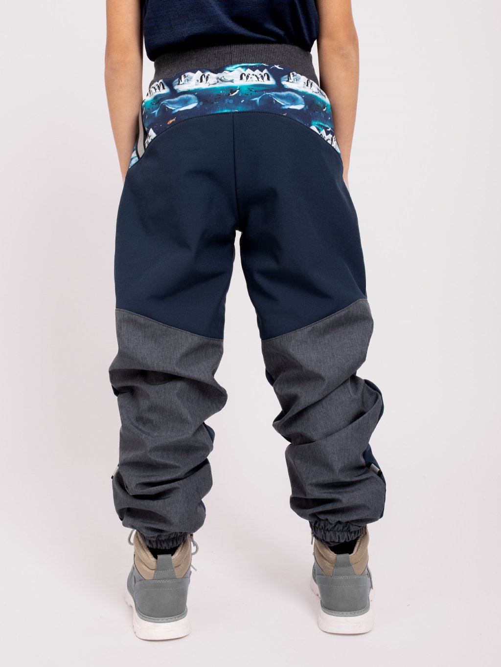 Dětské softshellové oteplovačky s fleecem Plus, Tm. Modročerná, Žíhaná Antracitová, Tučňáci