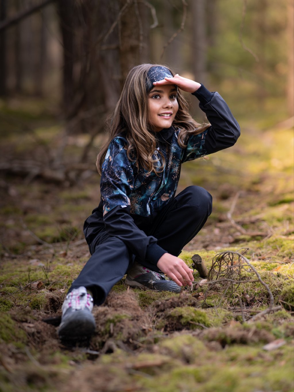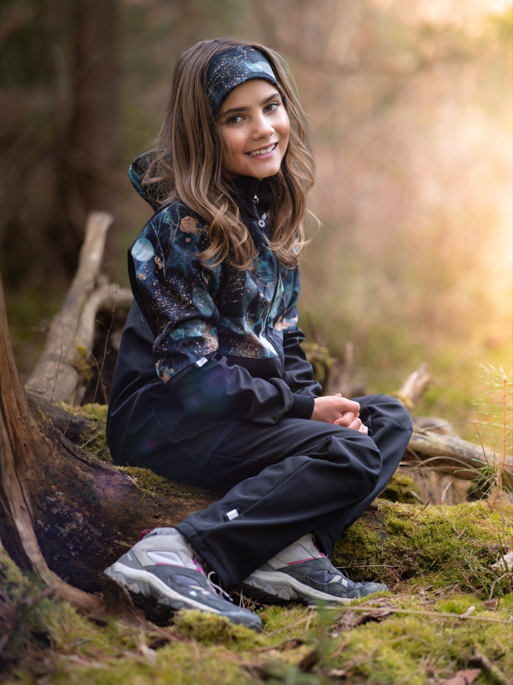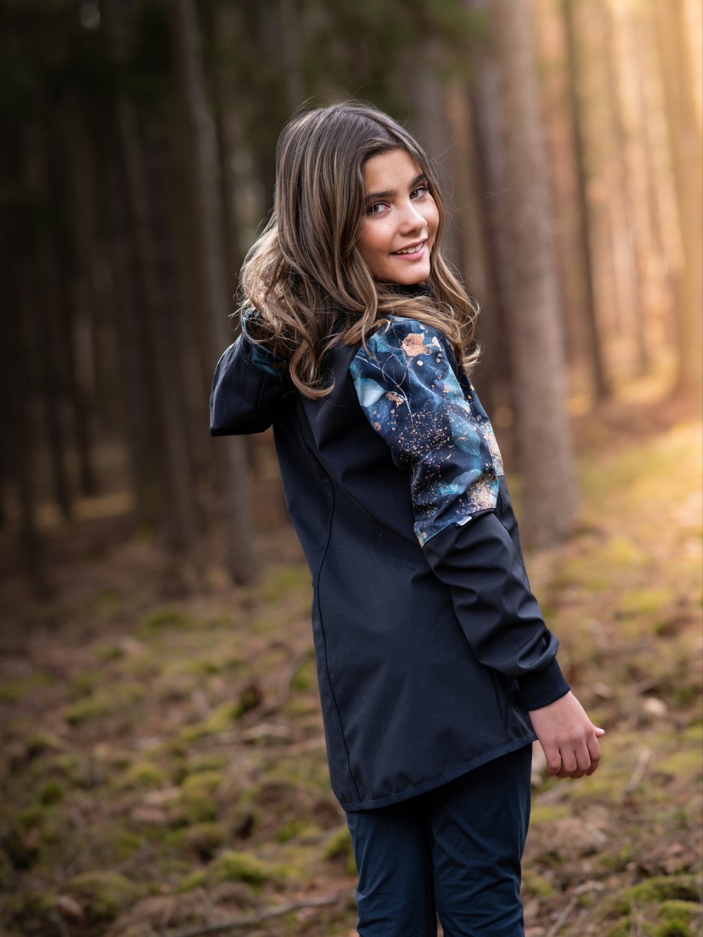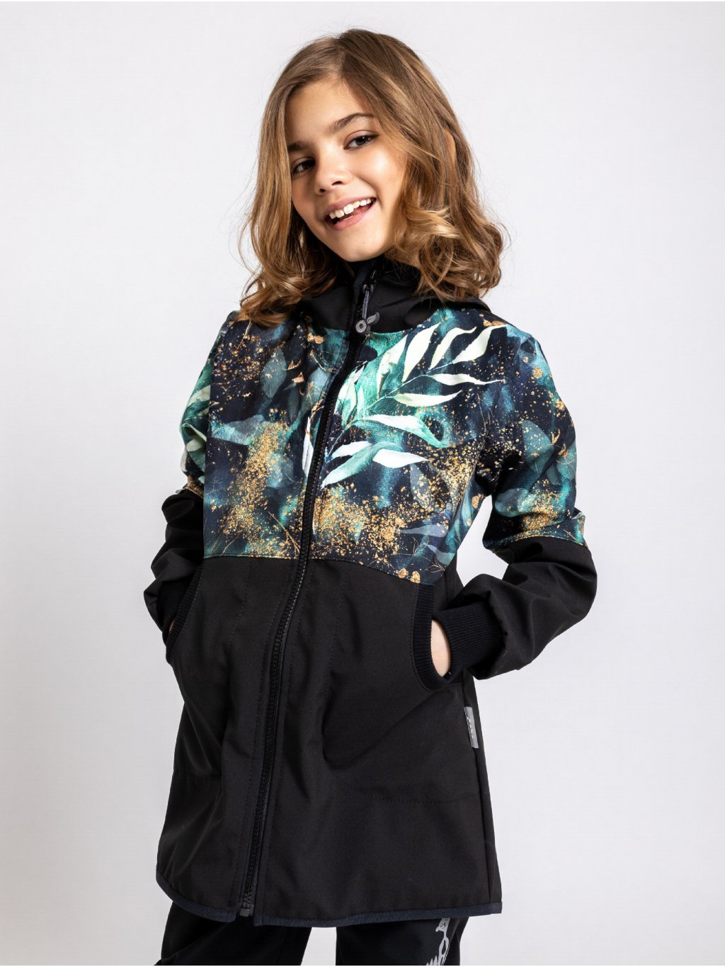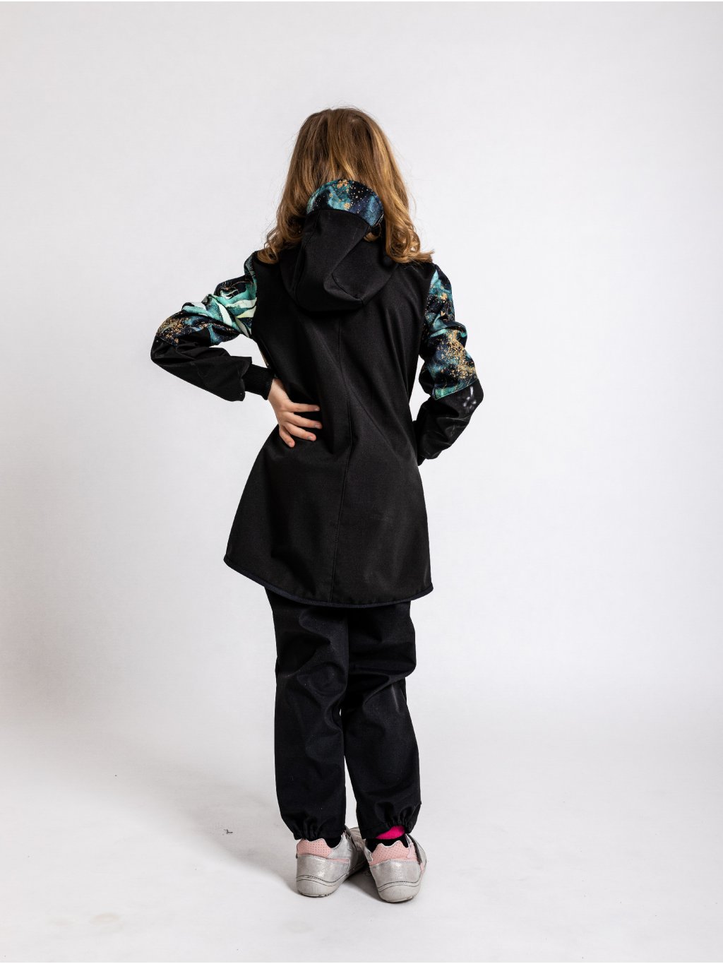 Dívčí softshellový kabát bez zateplení Street, Černá, Listy a větvičky