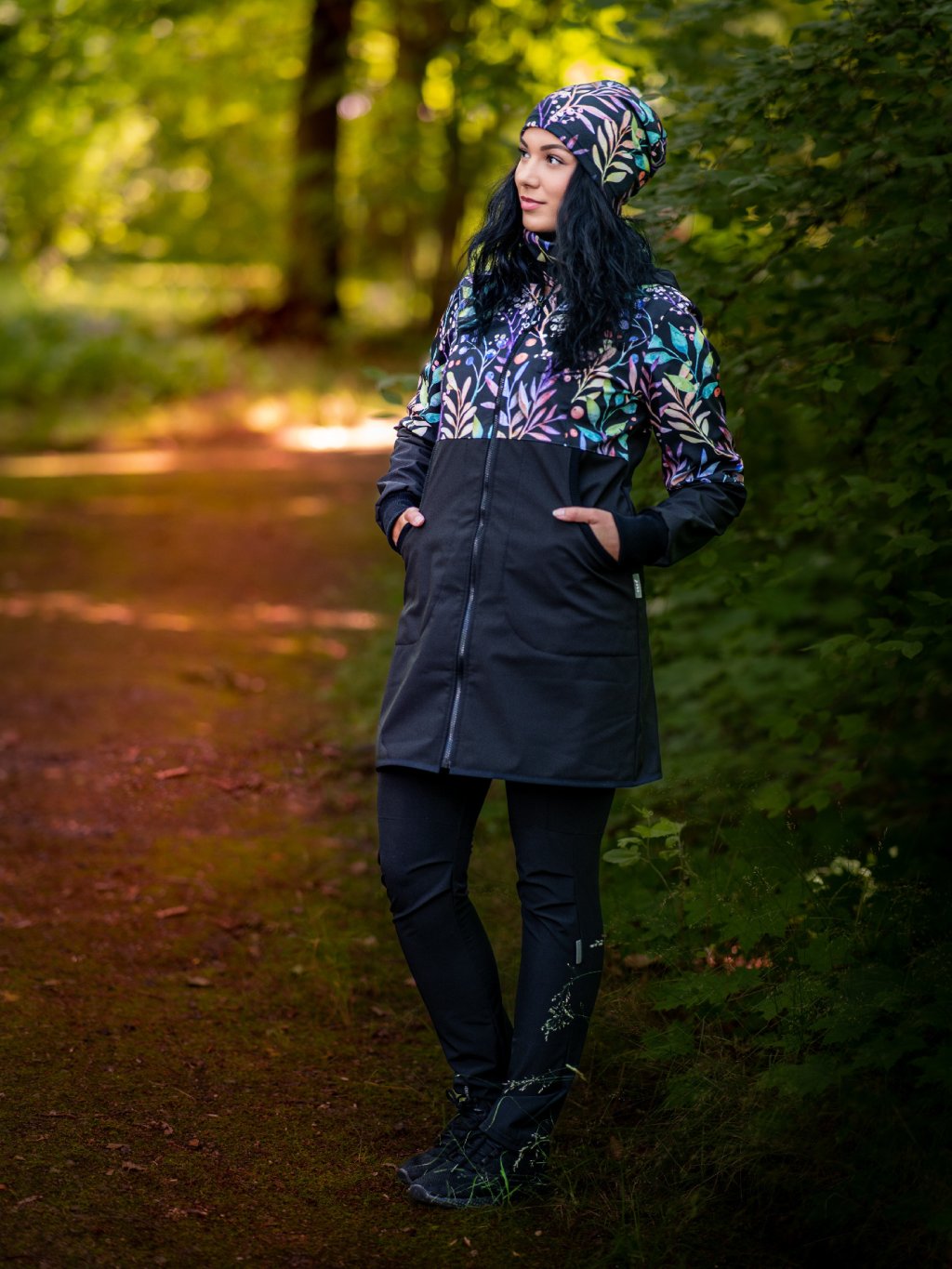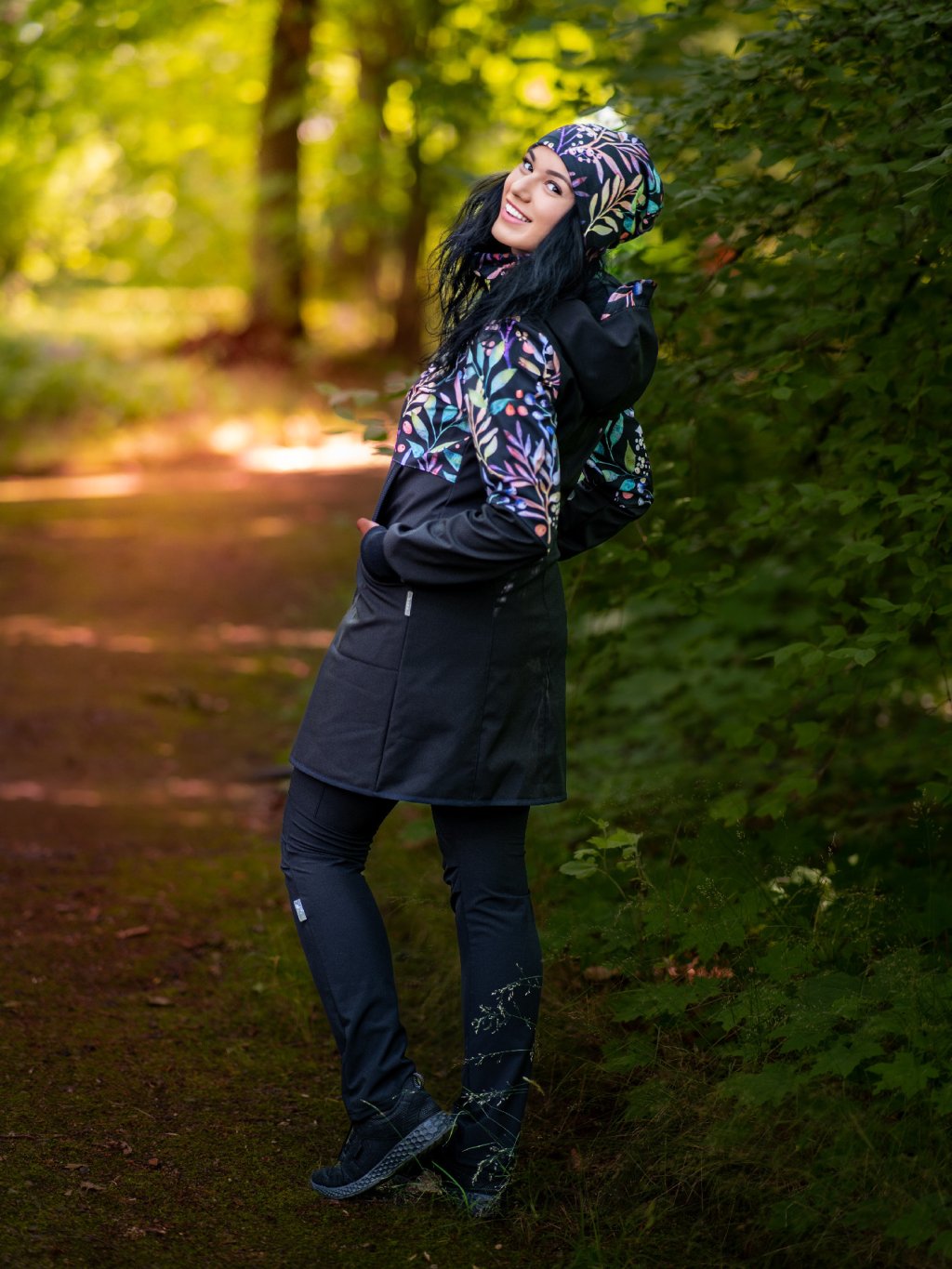 Lehký, hřejivý a šitý na postavu. Zateplený softshell s prodyšnou membránou neprofoukne, běžnou přeháňku zvládne a měkký fleece na rubu podrží teplo bez zbytečného objemu. Střih Street je více na tělo, zvýrazní křivky a prodloužená délka hezky kryje záda při chůzi i sezení. Kapuce ochrání před větrem, praktické kapsy pojmou telefon i klíče a decentní motiv dodá kabátu elegantní šmrnc do města i do přírody. Skvěle funguje na jaro a podzim, na cestu do práce i na volné dny venku. Navrženo a ušito v České republice. Výrobce: unuodesign, s.r.o., Vožická 329, 391 37 Chotoviny, Česká republika, DIČ: CZ27380076. Jsme plátci DPH.Softshell s membránou