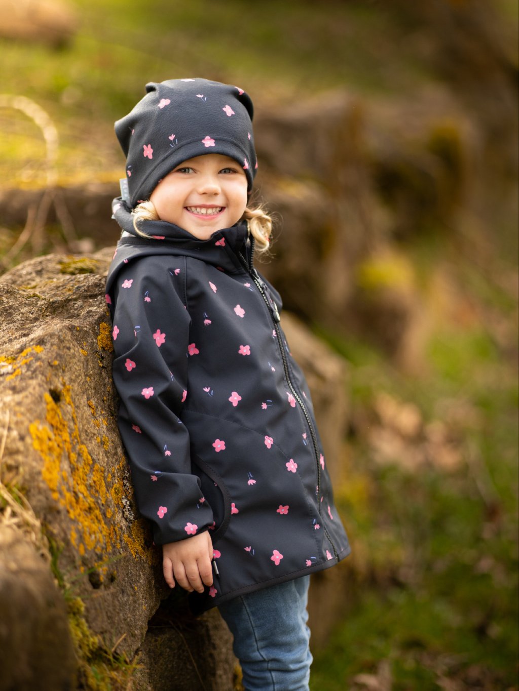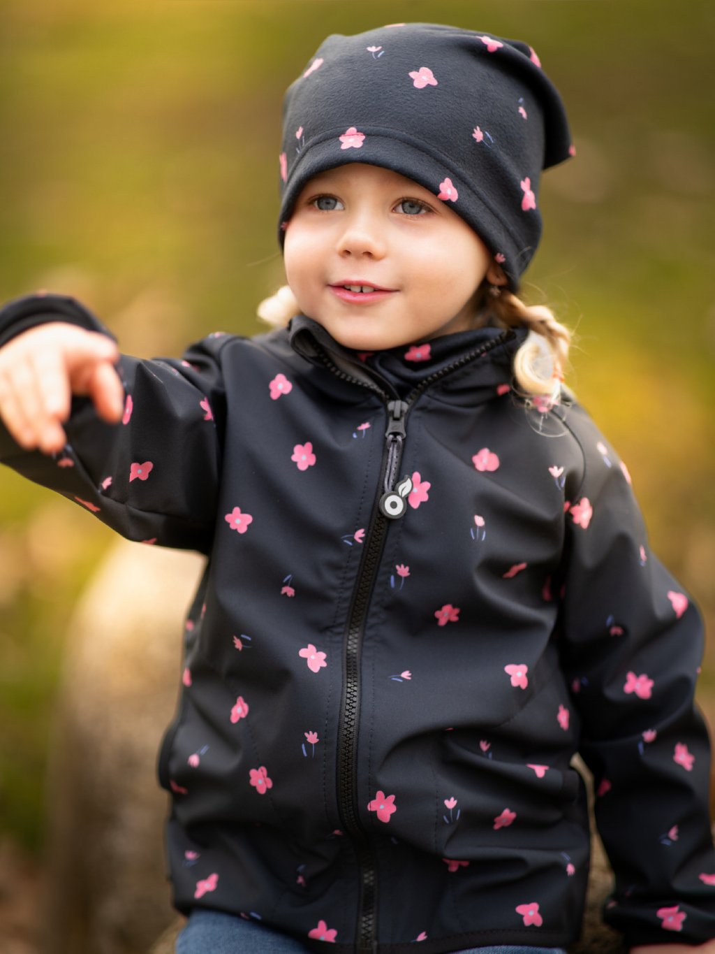 II. jakost, Dětská čepice fleecová Basic, Černá, Květiny