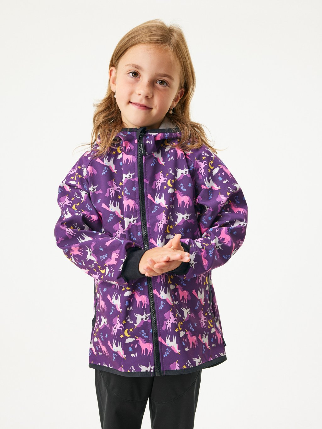 II. jakost, Dětská softshellová bunda s fleecem Basic, Jednorožci