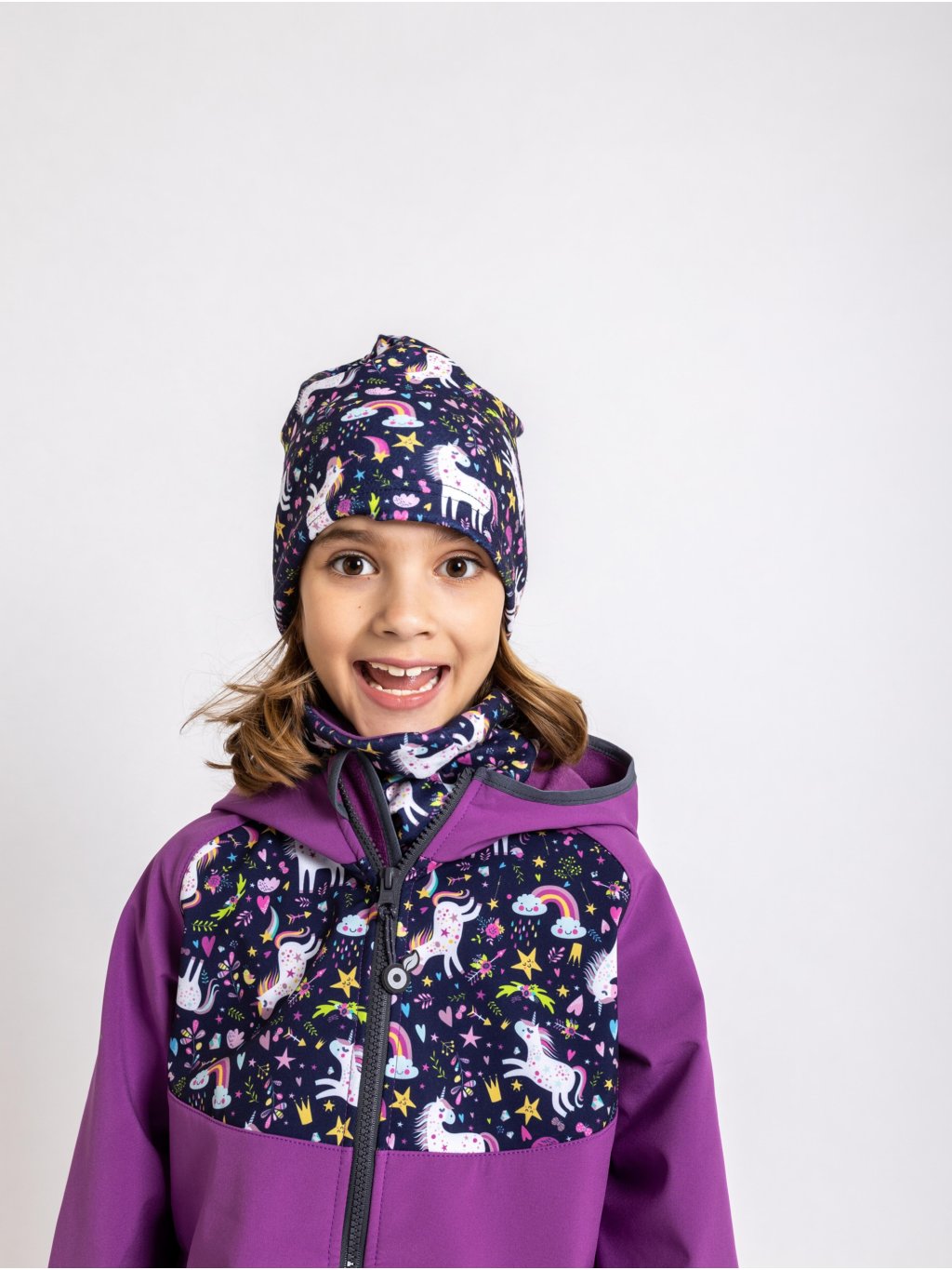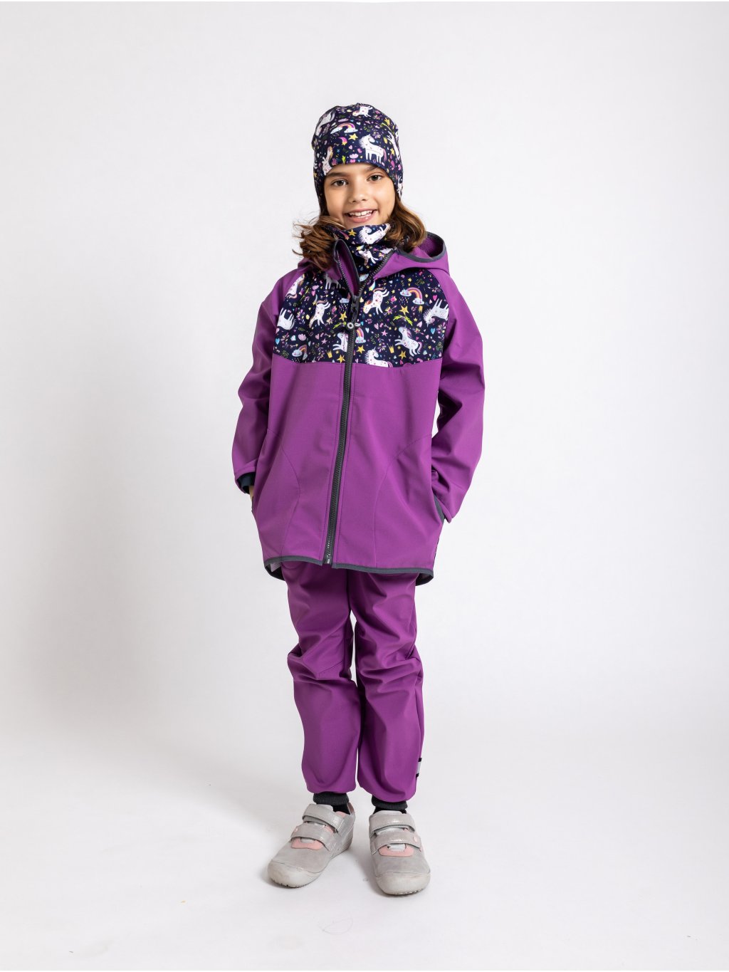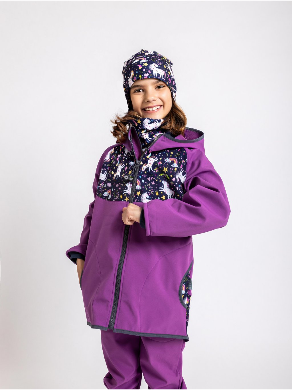 II. jakost, Dětská softshellová bunda s fleecem Basic, Ostružinová, Jednorožci