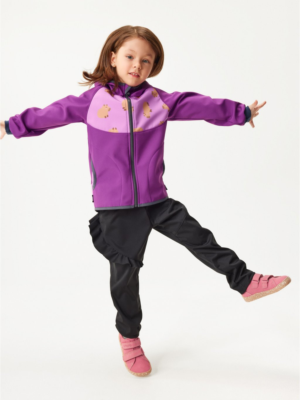 II. jakost, Dětská softshellová bunda s fleecem Basic, Ostružinová, Kapybary