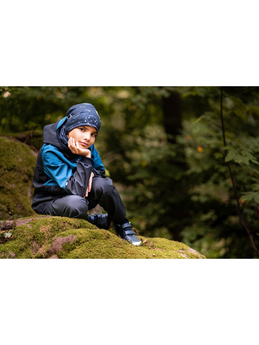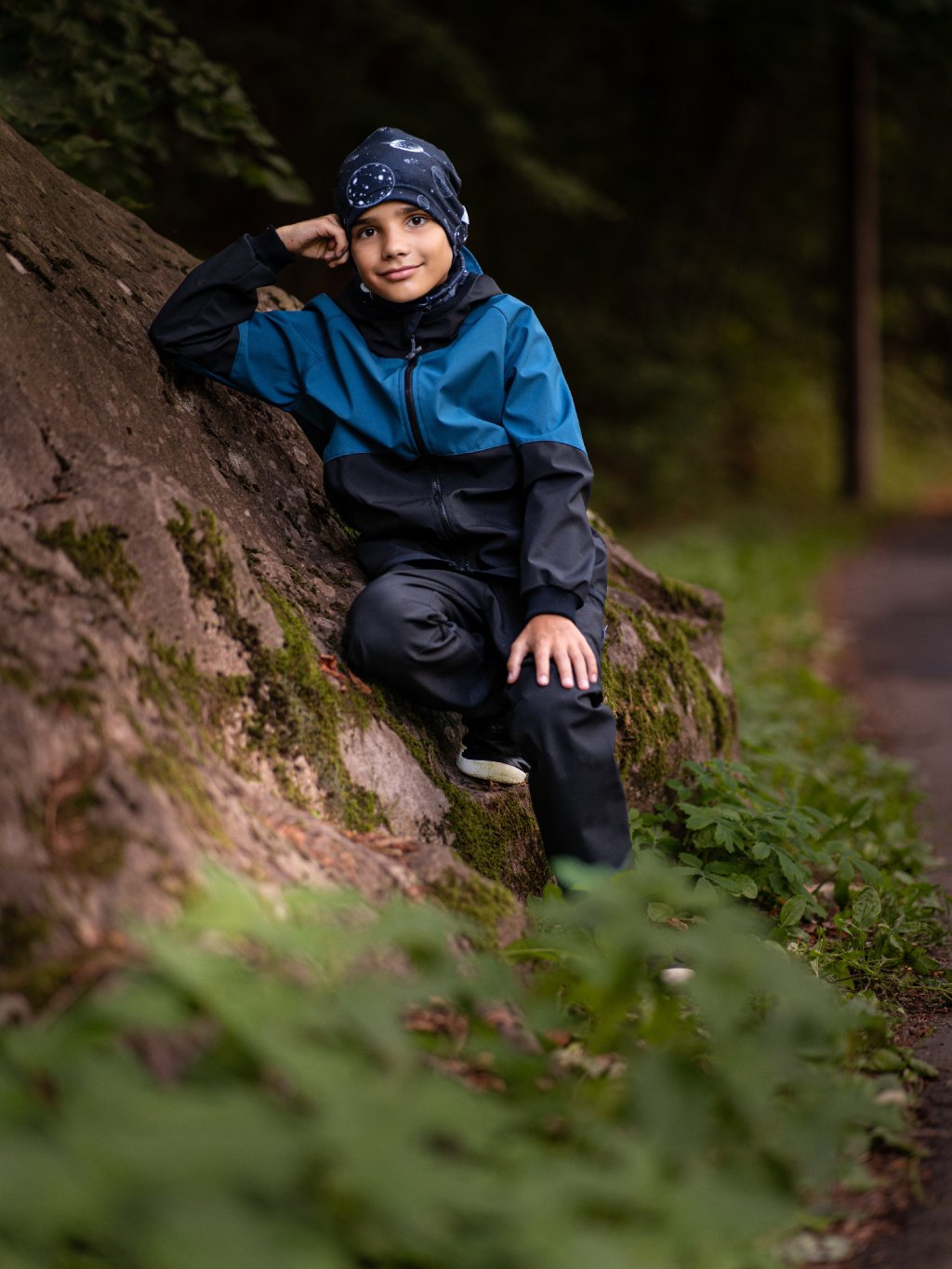Voděodolnost: 10 000 mm/H20, prodyšnost: 5 000 g/m2/24hod. V softshellu je teplo, i když kolem fouká jako o závod - naopak když vysvitne sluníčko, tak se v něm díky speciální membráně děti nezapotí. Softshell s fleecem využijete zejména v chladnějších jarních, podzimních a zimních měsících. Unuo softshell nemá jen funkční membránu, ale na povrchu jsme jej opatřily speciální ekologičtější úpravou PFC free, která zajišťuje vyšší voděodpudivost. Při silném dešti je nicméně vhodné kombinovat s pláštěnkou. Pro zachování skvělých vlastností doporučujeme nepoužívat aviváž ani sušičku a jednou za čas naimpregnovat. Pro extra ochranu jsme na kalhoty přidali vyztužení, aby vaše děti už nic nebrzdilo v každodenním dobrodružství. Materiál neobsahuje škodlivé látky ze skupiny PFAS.